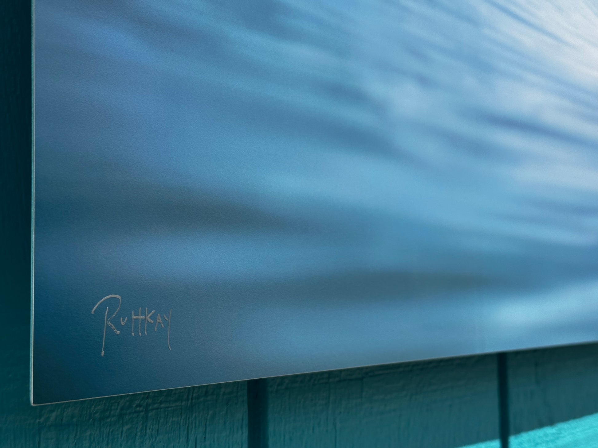 Printed on high-definition sublimated aluminum, this floating installation brings out every nuance in the water’s surface—each glassy contour rendered with stunning clarity. The proprietary heat-transferred ink process infuses the image into the metal, making it nearly holographic in feel.